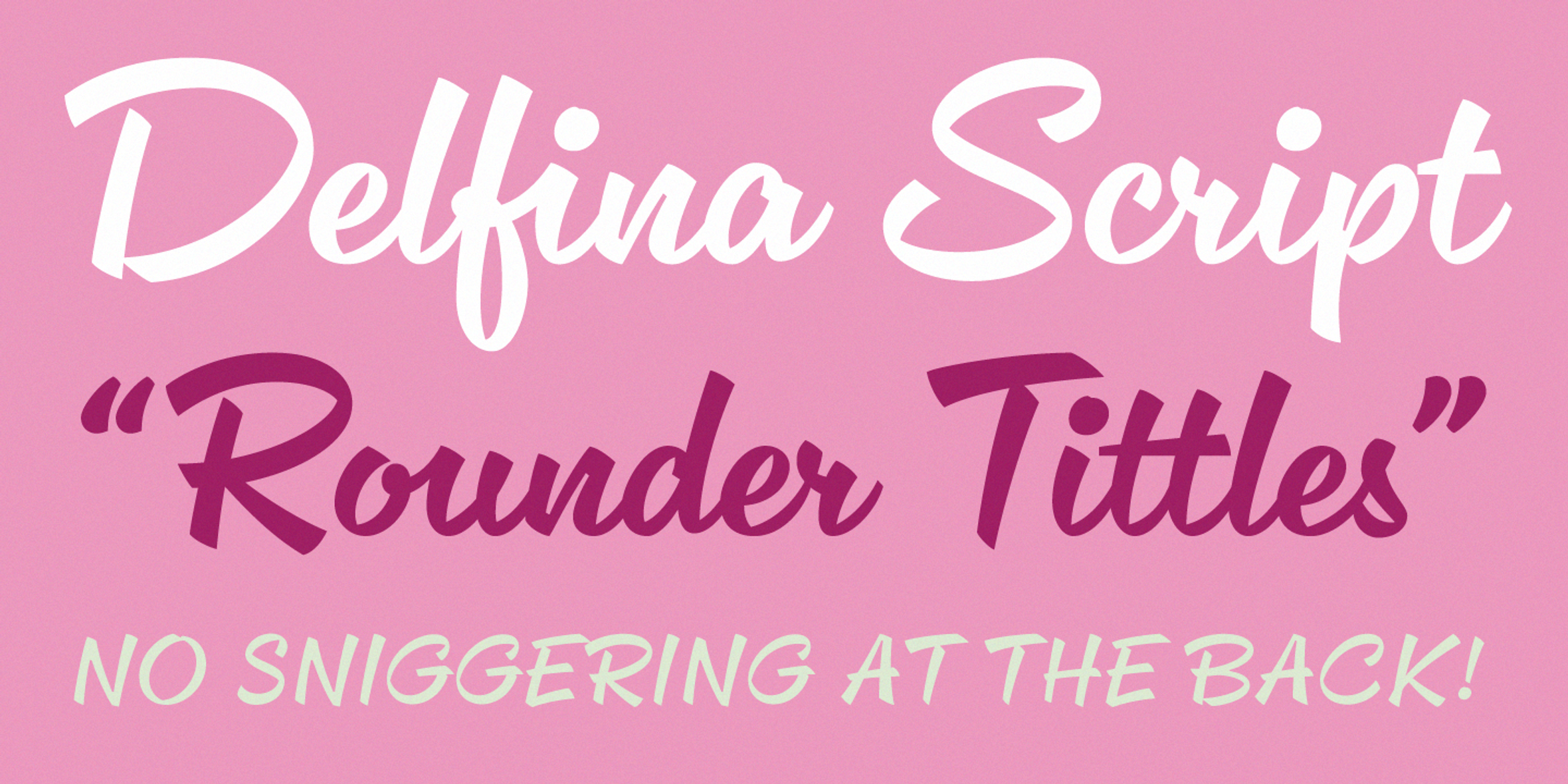 Delfino Script is a cool, connecting script that, with context, can appear retro or modern. Twin to Delfina, the only difference being squared tittles and punctuation, the shapes almost look like strips of tape, folding and flowing. However, this script is not created by any pen — its forms are built, not painted. Because of this, we could add extra sparkle to the text with structural details like ink traps. Delfino will be at home on screen or in print anywhere you want sparkle in your script.