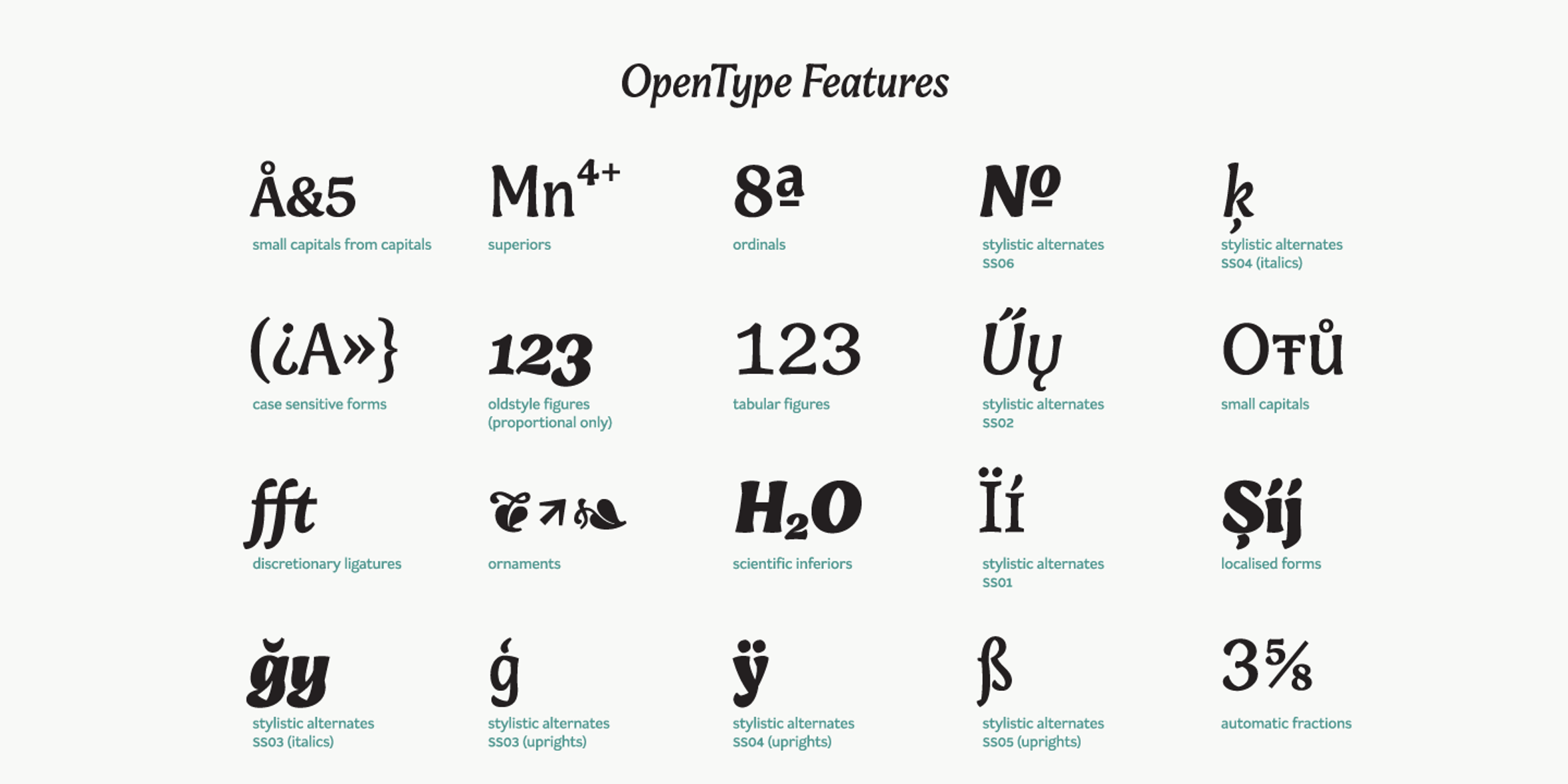Engria nimbly treads the fine line between sans and serif. Its wedge-like serifs resemble engraved forms created by the splayed shape made by the bristles when clamped together. At the same time, it looks like a stressed, flared sans. This mixed approach lends a unique voice. Thanks to its characteristic details, it is highly legible in text sizes and shines in display sizes. Engria has four weights, with italics, and makes a perfect addition to any designer’s typographic arsenal.