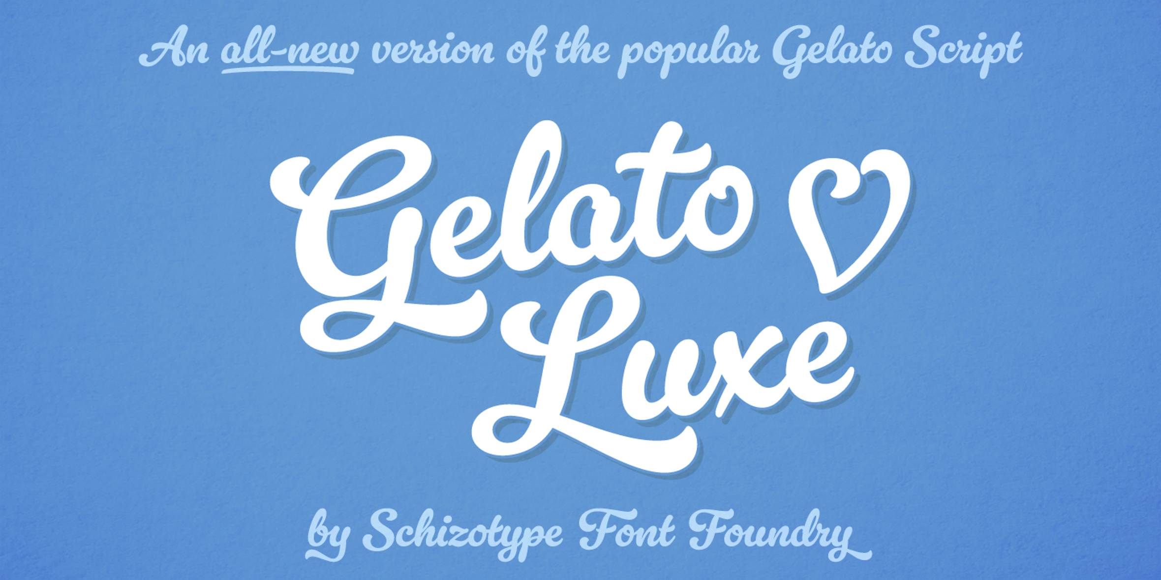 Gelato Luxe is a brush-style script family first created in 2011 as the popular Gelato Script. What was always typographically refined and versatile has reached new usability levels with six weights. From the start, this design has graced everything from designer handbags to prime-time TV shows, food blogs, wedding invitations, glossy magazines, and ice cream shops. You can effortlessly change the feel with the many features available, and it will work like a charm right out of the box.