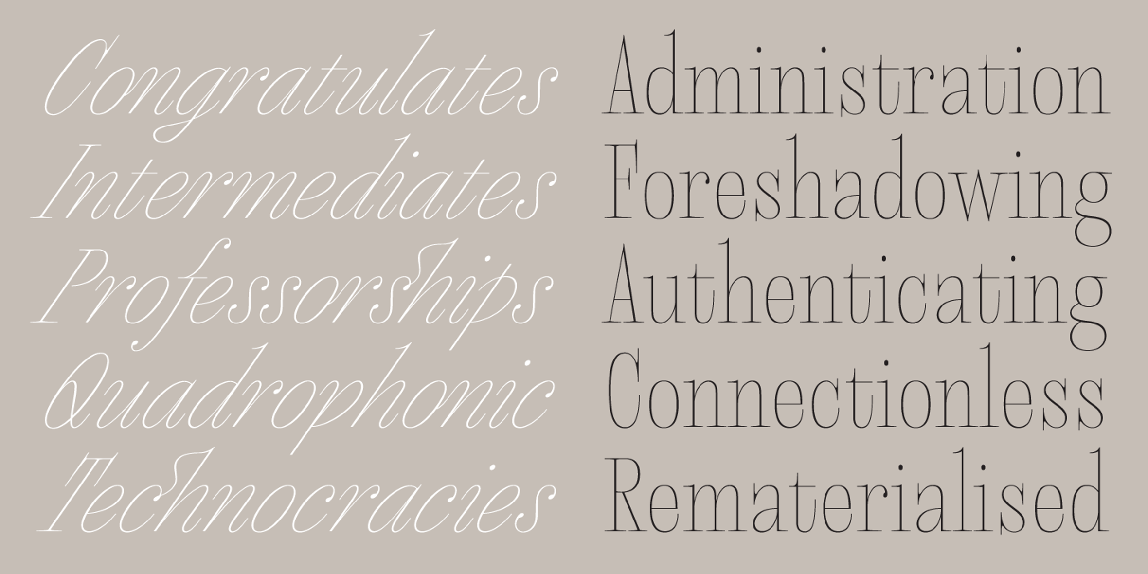 Megumi is a headline serif design commissioned by a fashion and lifestyle magazine with a heavy Japanese influence; it never happened. The uppercase letters are narrow and have an almost monospaced aesthetic, being influenced by Romaji letterforms. The serif is sculptural, and the italic is sinuous. Graphic designers will use it editorially, but it will also look sumptuous on museum displays and posters, couture labels and perfumes, and even postmodern book covers and title pages.