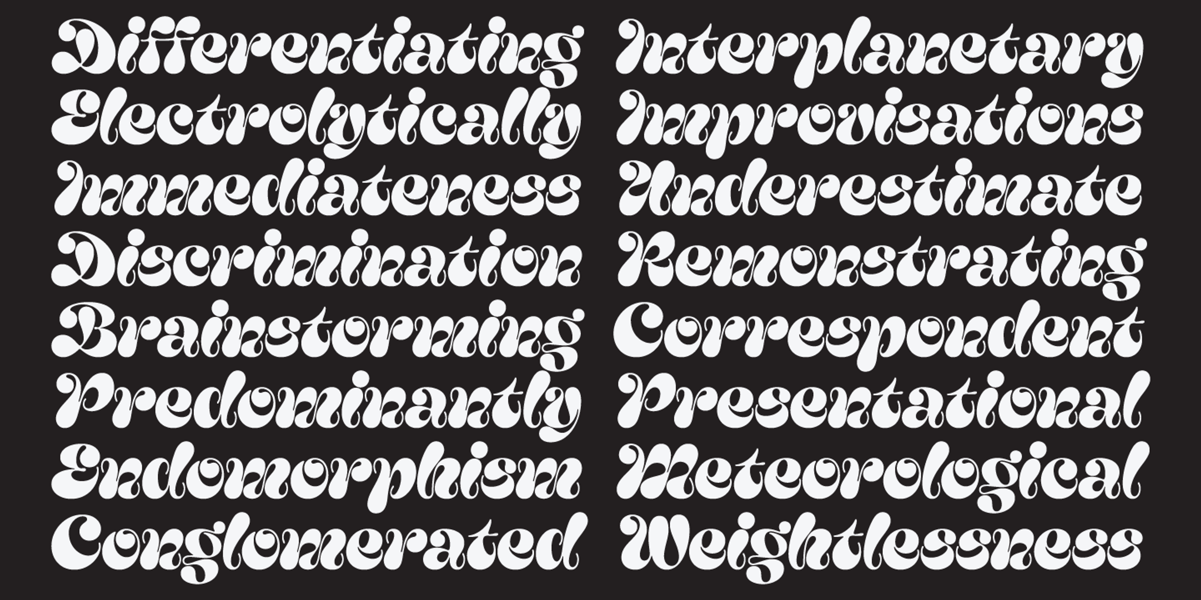 Yink is wild — in the best way possible. It is a script equivalent of wearing sequins to breakfast: unapologetic, attention-seeking, and having more fun than everyone else in the room. Pushing big, bulbous terminals up a notch! It’s a shamelessly over-the-top font perfect for big, bold branding, bespoke candy shops, week-long music festivals, laugh-out-loud greeting cards, thought-provoking art exhibits, and more!